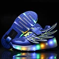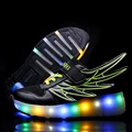Kids Glowing girls Sneakers with wheels Led Light up Roller Skates Sport Luminous Lighted Shoes for Kids Boys Pink Blue Black