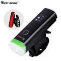 WEST BIKING Bicycle Light L2 LED USB Rechargeable Bike Headlamp 3-5 modes Cycling Handlebar Safety Flashlight With Warning Light