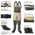 Army Green Waders Pants Fly Fishing Clothes Waterproof Suit Wading Shoes Aqua Shoe Felt Sole Boots Leaking Water Shoes DXMDU1