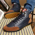 Best Offer New 2020 Men Leather Boots Fashion Autumn Winter Warm Cotton Brand Ankle Boots Lace Up Men Shoes Fo with Free Shipping Worldwide!