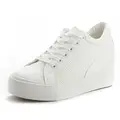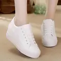 Women Sneakers PU Leather Casual Platform Trainers White Shoes 11CM Heels Autumn Wedges Breathable Woman Height Increasing Shoes
