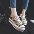 Women Leopard Shoes Platform high heel Canvas vulcanized sneakers New Arrival Women Flat Jogging Breathable Casual shoes