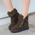 Woman Boots Platform Winter Warm Fur Snow Boot Wedge 2018 Genuine Leather Snowboot Zipper Ankle Boots Winter Shoes Woman Shoes