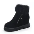 Women Snow Boots Winter Shoes Warm Plush Hidden Heel Ankle Boots For Woman Zip Shoes Genuine Leather Ladies Black Winter Boot