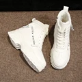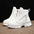 2019 New Platform Winter Boots White Boots Warm Fur Plush Leather Female Chunky Sneakers High Heel Zip Lace Up Ankle Snow Boots