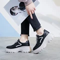 Genuine Leather Platform Breathable Sneakers women shoes Black Increase 7cm basic 2020 Autumn White Casual Shoes woman Student