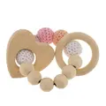 Cheap Offer 1 pc pearl teething rings wooden infant rattle toy baby teething accessories - multicolored - heart with FREE Worldwide Shipping!