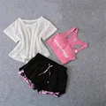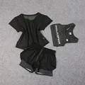 2019 3piece Women's Yoga Sets Sport Women Fitness Gym Yoga Bra Top Tshirt Sportswear Trainning Short Tracksuit Running Suit