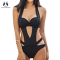 Limited Offer 2020 Sexy Black Halter Cut Out Bandage Trikini Swim Bathing Suit Monokini Push Up Brazilian Swimwea with FREE Shipping Worldwide!