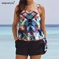 2020 Plus Size Swimwear Women Tankini Set Two Piece Swimsuit High Waisted Bathing Suits Vintage Retro Bikini Set Swimming Suit