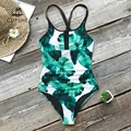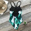 Discount Offer CUPSHE Green Leaf Print Cross One-piece Swimsuit Women Ruched Tied Monokini Swimwear 2020 Girl Beac with FREE Shipping Worldwide!