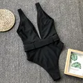 Discount Price 2019 Women's Swimsuit Deep V Neck Swimwear Belt Bathing Suit Sexy Monokini One Pieces Swimsuit Blac with FREE Shipping Worldwide!