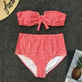 Best Price Sexy Retro Plaid High Waist Bikini 2020 Swimwear Women Swimsuit Female V Wire Bandeau Swim Bathing with Free Shipping Worldwide!
